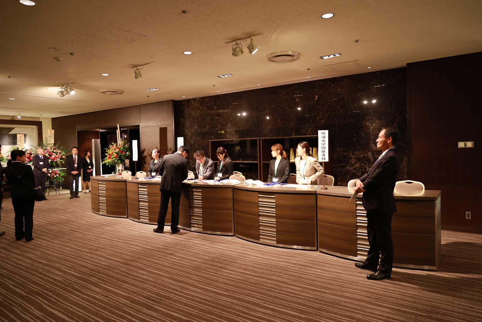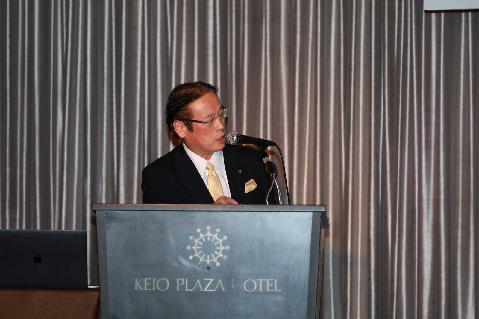 17:00 からは祝賀会の部が開催され、学校法人明海大学・学校法人朝日大学理事長 宮田 淳氏のご挨拶をいただきました。
