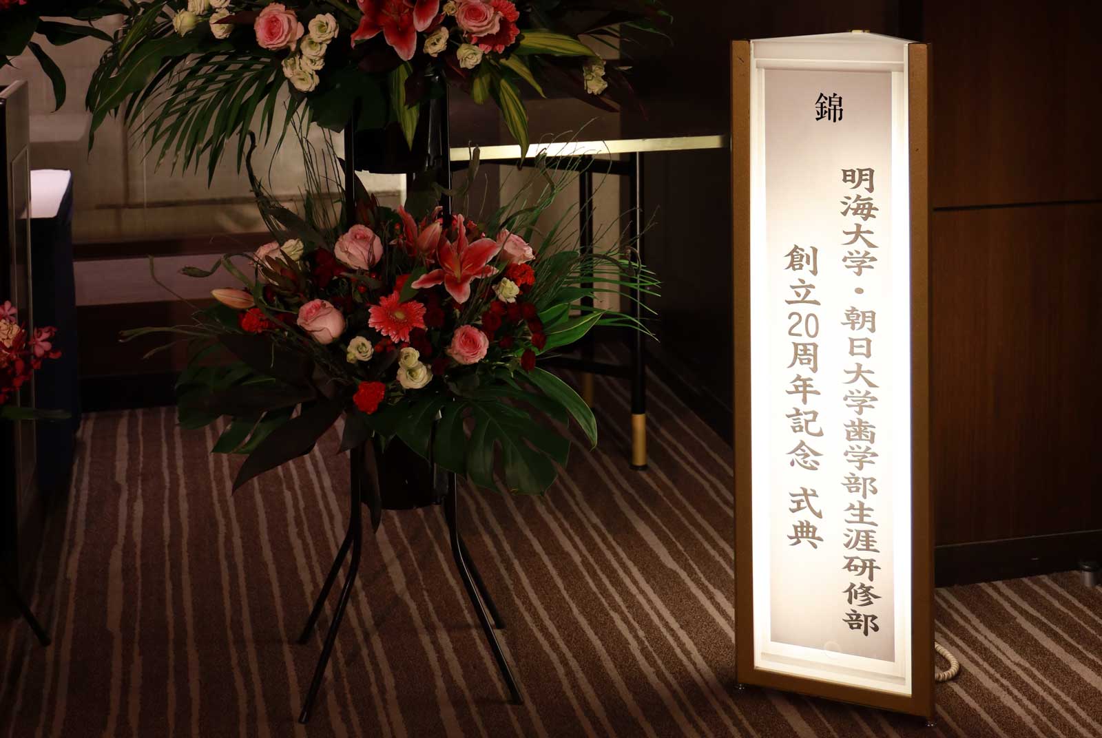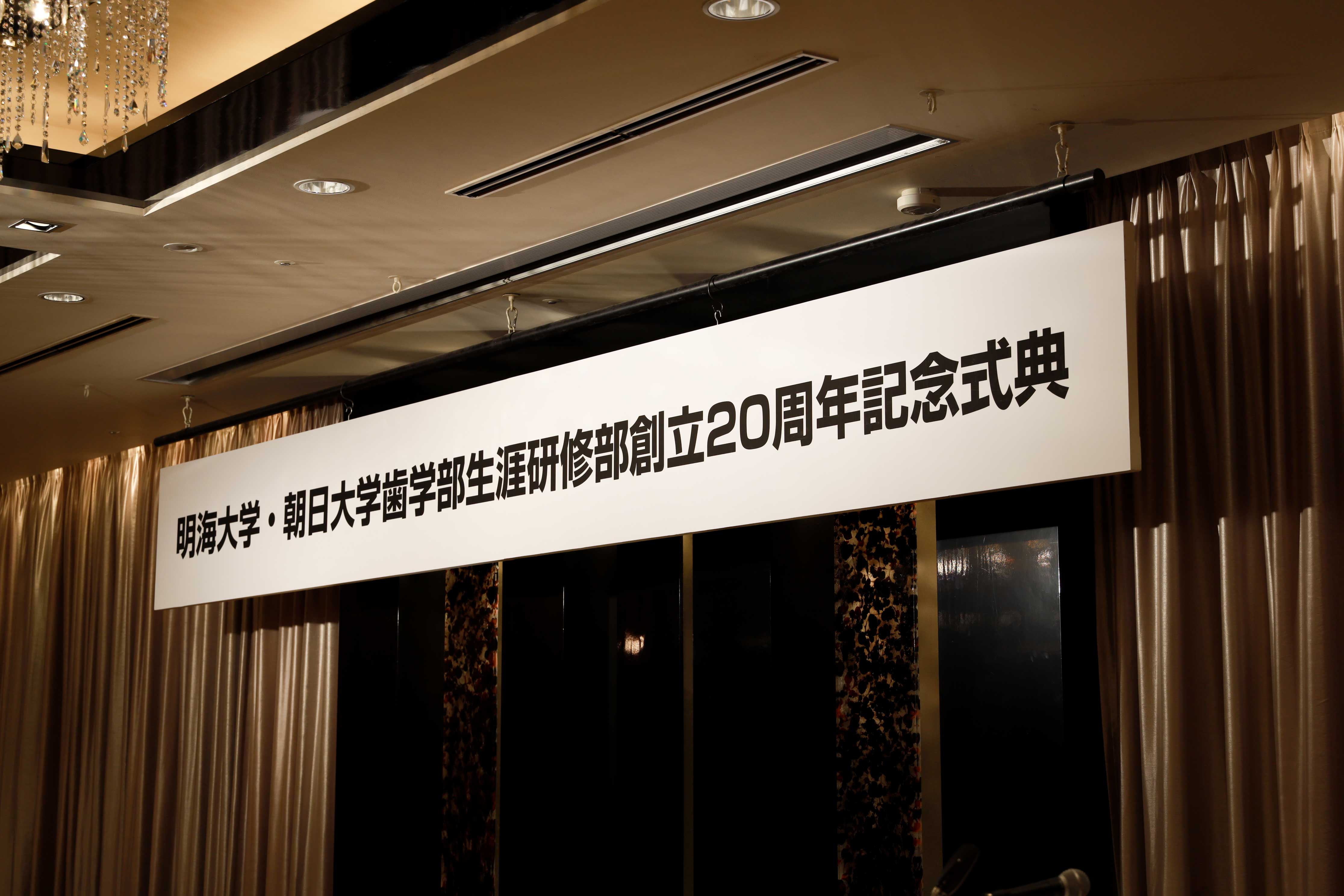 2019 年9 月12 日(木)、新宿京王プラザホテルにて、明海大学・朝日大学歯学部生涯研修部創立 20 周年記念の式典を開催し、会員をはじめ、多くの方々に参加していただき、盛大な記念式典・祝賀会となりました。