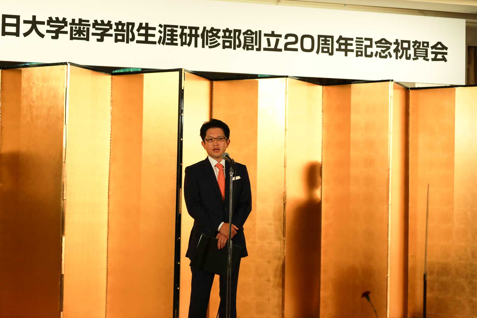 式典の部、祝賀会の部ともに明海大学歯学部生涯研修部副部長 俵木 勉氏が総合司会を担当されました。